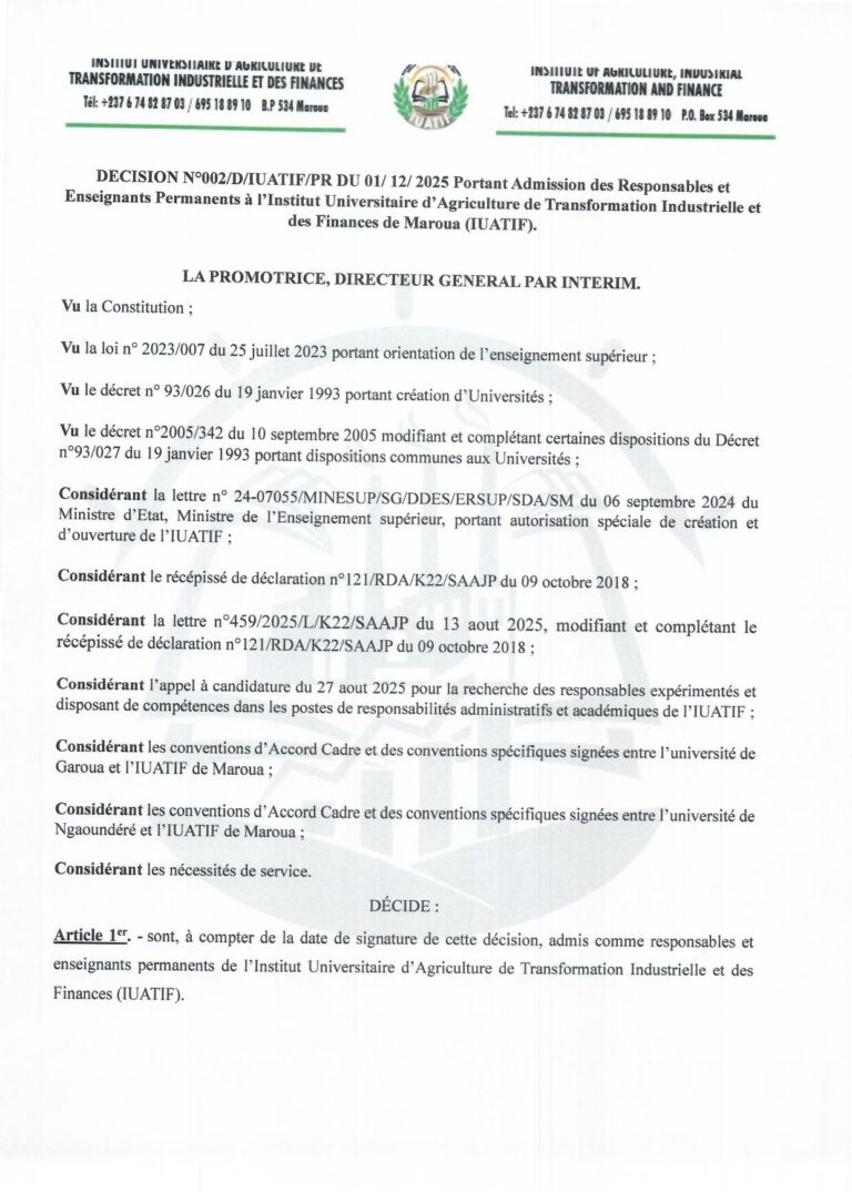 Né d’une vision ambitieuse et d’un engagement fort pour le développement local et national, l’IUATIF se positionne comme un véritable levier de 𝐟𝐨𝐫𝐦𝐚𝐭𝐢𝐨𝐧, 𝐝’𝐢𝐧𝐧𝐨𝐯𝐚𝐭𝐢𝐨𝐧 𝐞𝐭 𝐝𝐞 𝐭𝐫𝐚𝐧𝐬𝐟𝐨𝐫𝐦𝐚𝐭𝐢𝐨𝐧 𝐬𝐨𝐜𝐢𝐨-𝐞́𝐜𝐨𝐧𝐨𝐦𝐢𝐪𝐮𝐞, au service de notre jeunesse et de notre continent.