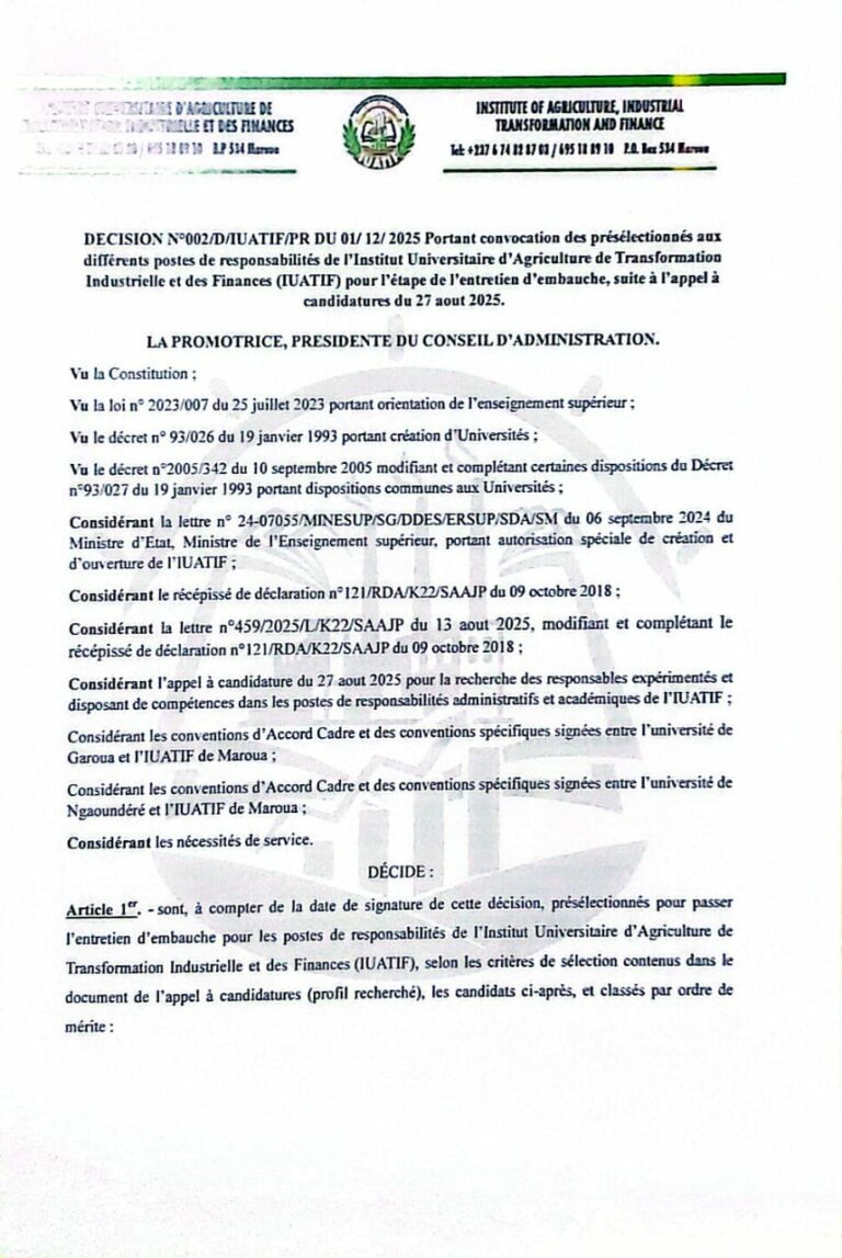 C’est avec une immense joie et une profonde détermination que je vous souhaite la bienvenue à l’Institut Universitaire d’Agriculture, de Transformation Industrielle et des Finances (IUATIF) de Maroua.